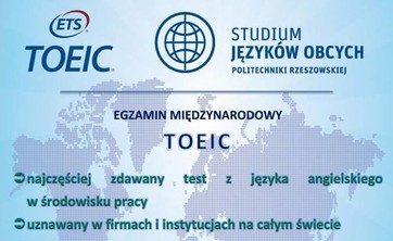 Studium Języków Obcych Politechniki Rzeszowskiej (SJO) należy do grupy ośrodków egzaminacyjnych firmy ETS GLOBAL, która oferuje międzynarodowe testy z języka angielskiego takie jak np. TOEIC.