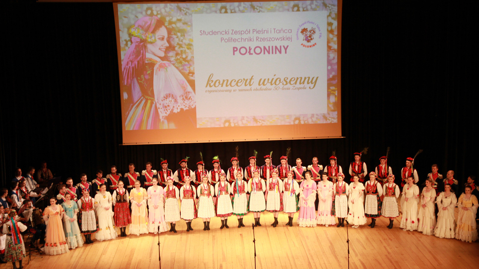 Studencki Zespół Pieśni i Tańca Politechniki Rzeszowskiej „POŁONINY" podczas koncertu wiosennego zaprezentował najpiękniejsze polskie pieśni i tańce dla ponad 400 widzów zgromadzonych w auli V-1 Politechniki Rzeszowskiej przy ul. Powstańców Warszawy 12.