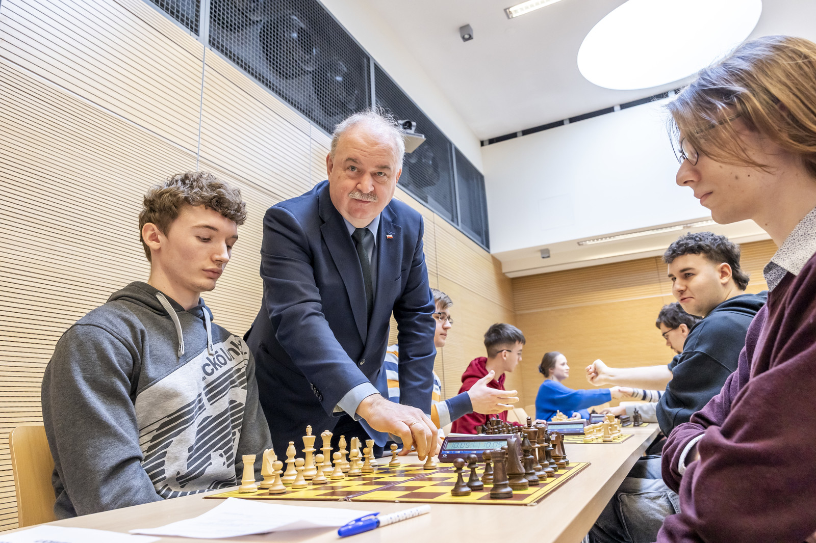 Uroczyste otwarcie odbyło się w auli V1 Politechniki Rzeszowskiej. Wydarzenie zgromadziło około 500 osób. Naszą uczelnię reprezentowali rektor prof. dr hab. inż. Piotr Koszelnik wraz z prorektor ds. kształcenia dr hab. Iwoną Włoch, prof. PRz, dziekan Wydziału Matematyki i Fizyki Stosowanej dr hab. Czesław Jasiukiewicz, prof. PRz wraz z prodziekan ds. kształcenia dr Małgorzatą Wołowiec-Musiał i prodziekanem ds. rozwoju dr. Sławomirem Wolskim, prof. PRz. Wśród zaproszonych gości znaleźli się m.in.: wicemarszałek województwa podkarpackiego i zarazem zapalony szachista, fundator pucharów dla zwycięzców turnieju Piotr Pilch, przedstawiciel Kuratorium Oświaty w Rzeszowie Marek Kądziołka, zastępca dyrektora Wydziału Rozwoju i Wsparcia Edukacji, szachista, pomysłodawca turnieju Maciej Karasiński, prezes CM Medyk, jednocześnie założyciel Stowarzyszenia Podkarpacki Klaster Zdrowia i Profilaktyki, Fundacji Medyk dla Zdrowia Stanisław Mazur oraz dyrektor Centrum Badawczo-Rozwojowego Medyk Artur Grzesik, który wspiera nas organizacyjnie od początku turnieju.