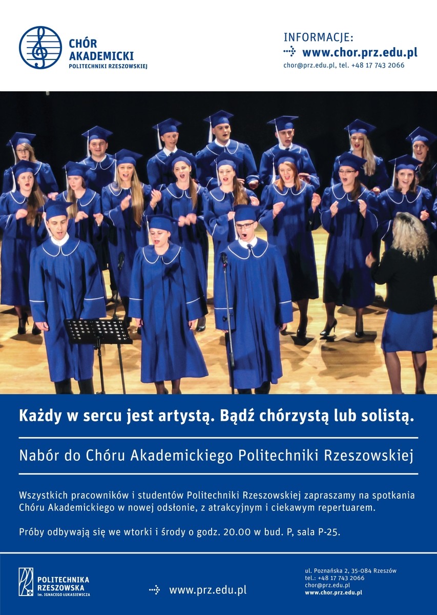 Chór Akademicki Politechniki Rzeszowskiej po raz kolejny ogłasza nabór osób, które chcą podzielić się swoim talentem muzycznym.