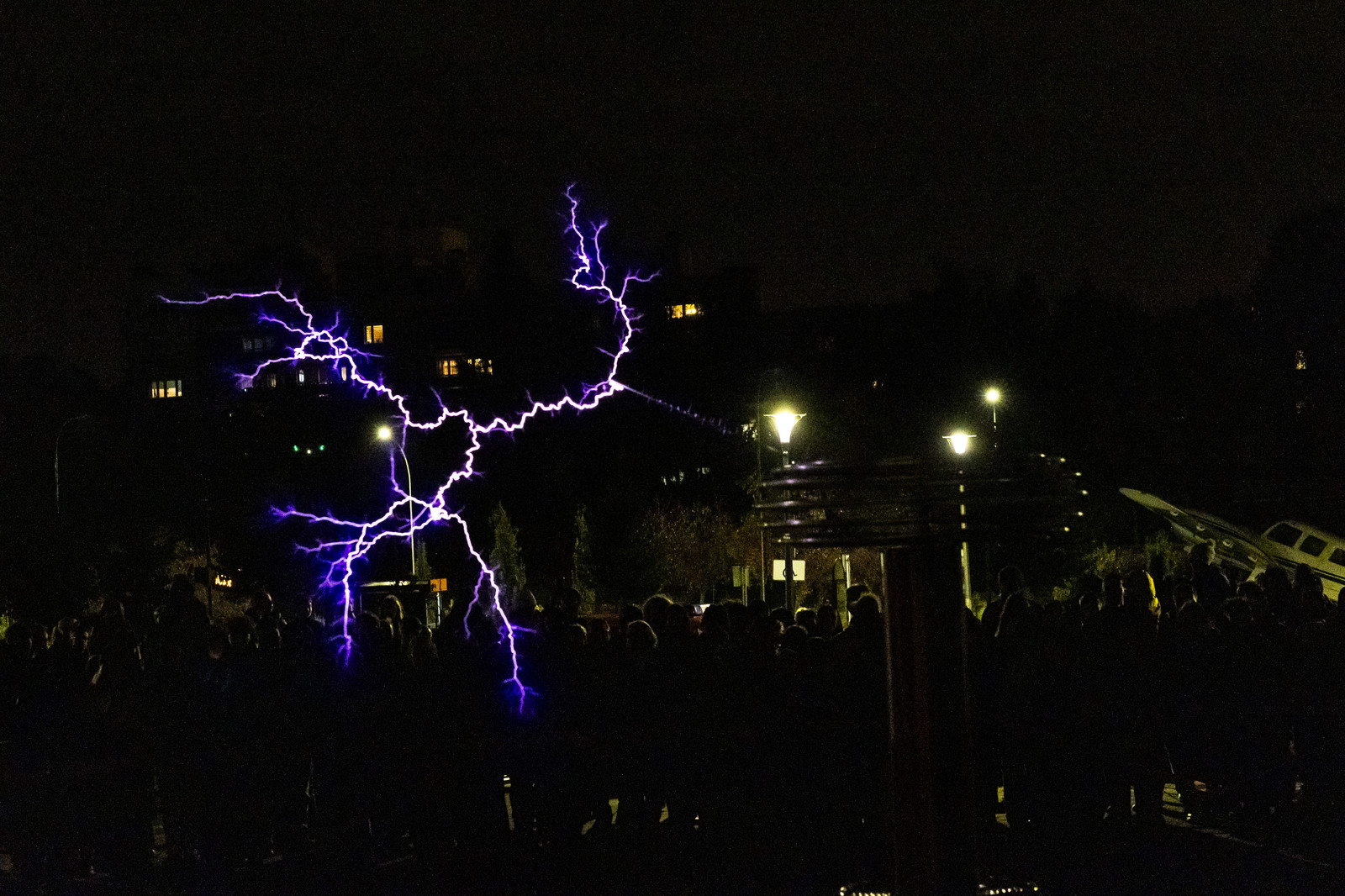Najbardziej wyczekiwaną atrakcją Nocnych Spotkań z Nauką był „Teatr wysokich napięć”. Do tego widowiskowego spektaklu wykorzystany został jeden z największych w swojej klasie transformatorów Tesli. Kilkumetrowe wyładowania, które w rytm muzyki rozświetlały mrok, wzbudziły zachwyt widowni.