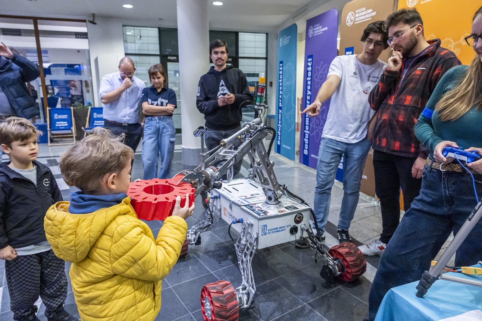 Studenci z Koła Naukowego EUROAVIA Rzeszów demonstrowali pasjonatom lotnictwa bezzałogowe samoloty udźwigowe, które sami skonstruowali. O sukcesach Łazika Marsjańskiego na międzynarodowych zawodach opowiadali studenci Koła Naukowego Lotników. Ci, którzy marzą o rywalizacji na torze wyścigowym Formuły, mogli spotkać zwycięzców zawodów Formuły Student i dowiedzieć się wszystkiego o konstrukcji bolidu. Studenci PRz Racing prezentowali również bolid wyścigowy. Ogromnym zainteresowaniem cieszyły się także Druk 3D prezentowany przez Koło Naukowe Szybkiego Prototypowania, symulator lotu, symulator jazdy samochodem ciężarowym, symulator skoku spadochronem i oczywiście robopies - konstrukcja łącząca nowoczesną robotykę z elementami sztucznej inteligencj. Ponadto uczestnicy mogli skorzystać z atrakcji przygotowanych przez Obserwatorium Astronomiczne Radomyśl Wielki, Akademię Umiejętności Technicznych Leonardo oraz RoboLab (stanowisko z klockami LOFI, roboty Mini sumo, Wytwórnia Kreatywności).