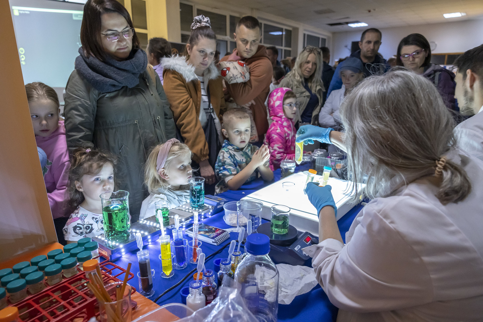 - na Wydziale Chemicznym – pokazy „Czy na Wydziale Chemicznym straszy? – znikający duch”, „Chemiczne zwierzęta – wąż i kameleon”, „Wstrząśnięty błękit”, „Chemiczna lawa”, Techniki in vitro i in vivo w badaniach biotechnologicznych (Koło Naukowe Insert), Lewitacja akustyczna, Lasery i fluorescencja Biomodelowanie 3D z użyciem gestów rąk (Koło Naukowe Ab Initio), Kolorowa ekstrakcja ATPE, Wpływ temperatury na właściwości materiałów, Stwórz swój eliksir (Koło Naukowe IPSUM), Świat polimerami drukowany (Koło Naukowe Przetwórcy) Laboratorium piwowara – pokaz warzenia piwa (Koło Naukowe PRzy Piwie),