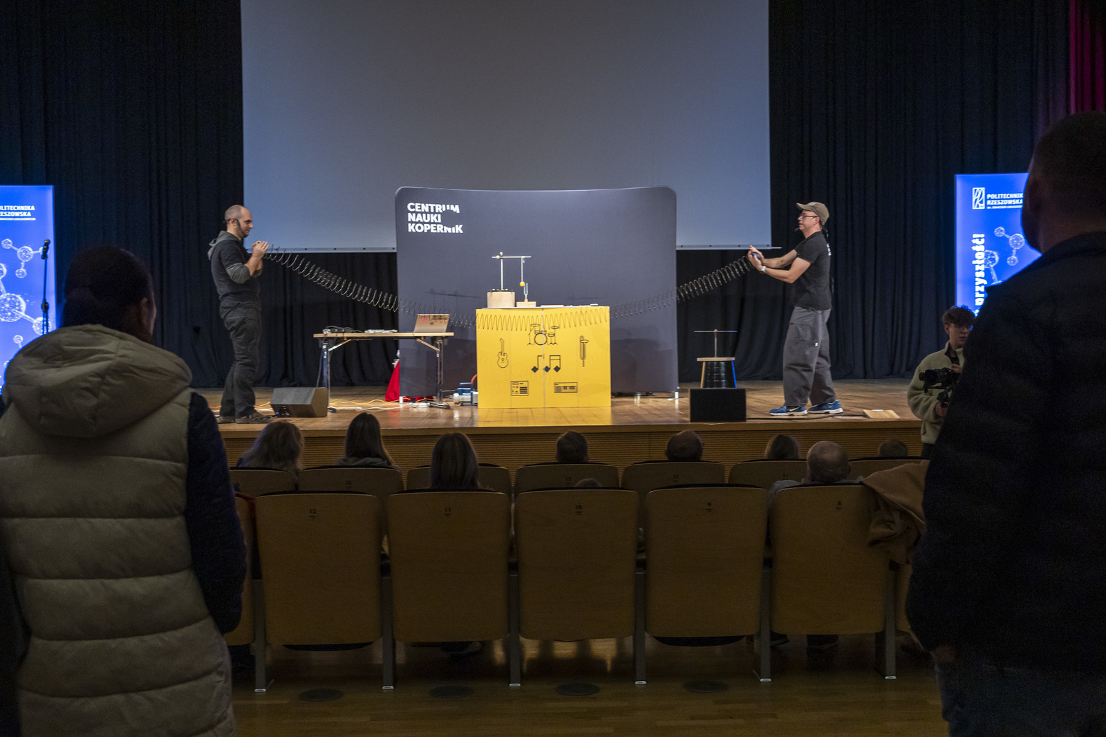 Czy między Ziemią a orbitą Księżyca zmieściłyby się wszystkie pozostałe planety Układu Słonecznego? Do jakiego rozmiaru trzeba by „ściskać” Ziemię, by zamieniła się w czarną dziurę? Na te pytania odpowiadali Małgorzata Wilczak i Paweł Pasterz podczas spektaklu popularnonaukowego „Kwestia skali”. O „Naukowych tajemnicach Wawelu” opowiedział Mariusz Meusa.