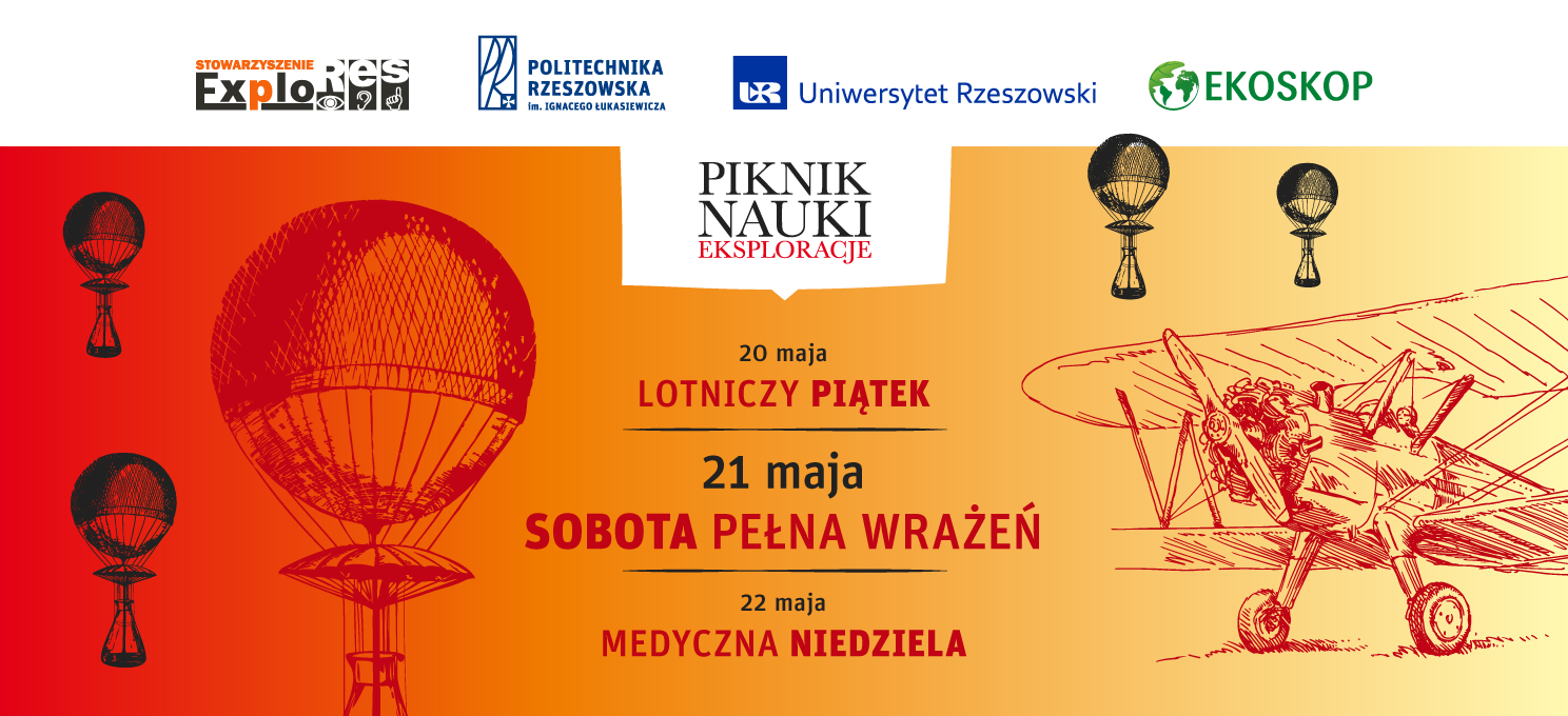 W sobotę 21 maja br. w okolicach fontanny multimedialnej i rzeszowskiego zamku odbędzie się Piknik Nauki EKSPLORACJE. Celem wydarzenia jest popularyzacja nauki i techniki, propagowanie interaktywnego modelu przekazywania wiedzy i edukacji nieformalnej. Bogaty program pikniku to wynik współpracy organizatorów wydarzenia: Politechniki Rzeszowskiej im. I Łukasiewicza, Uniwersytetu Rzeszowskiego, Stowarzyszenia EKOSKOP i Stowarzyszenia ExploRes.