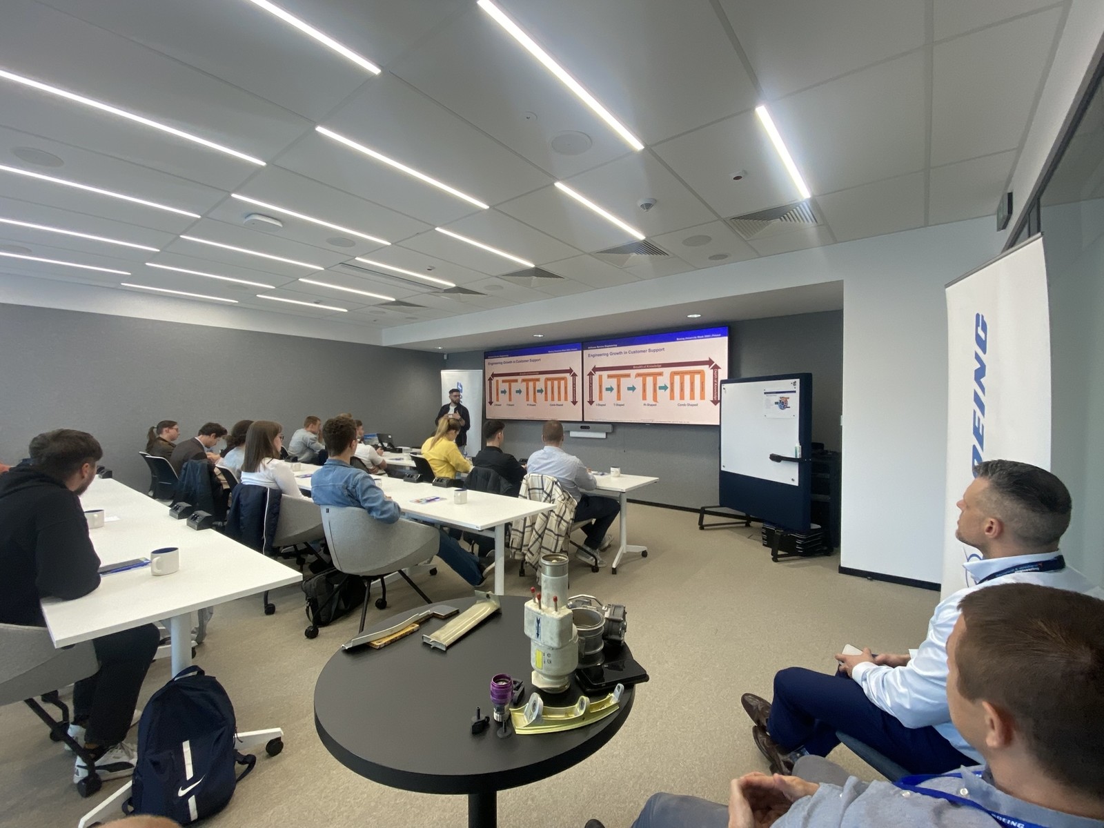 Wśród poruszanych tematów znalazły się takie zagadnienia, jak: analiza naprężeń, inżynieria projektowa i produkcyjna, inżynieria systemów, inżynieria systemów elektrycznych, inżynieria awioniki i oprogramowania. Wydarzenie miało wymiar inspiracyjny – uczestnicy mieli okazję spotkać się z absolwentami Politechniki Rzeszowskiej, którzy po odbyciu stażu zdecydowali się na kontynuowanie kariery zawodowej w firmie Boeing. Podczas specjalnej sesji goście dzielili się swoimi doświadczeniami z pracy i udzielali wskazówek dotyczących procesu rekrutacyjnego. Było to wyjątkowo cenne dla uczestników ze względu na potencjał do podjęcia stażów w tej firmie.